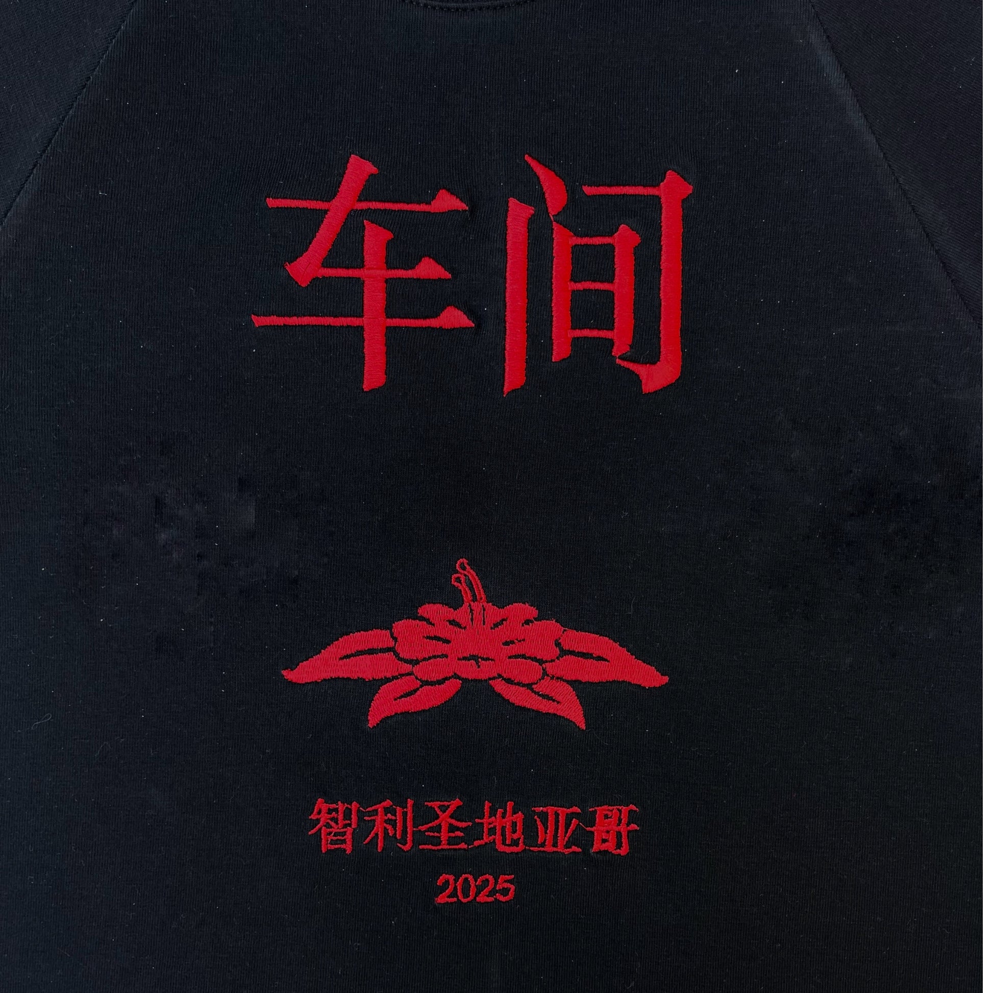 Diseño en bordado rojo.