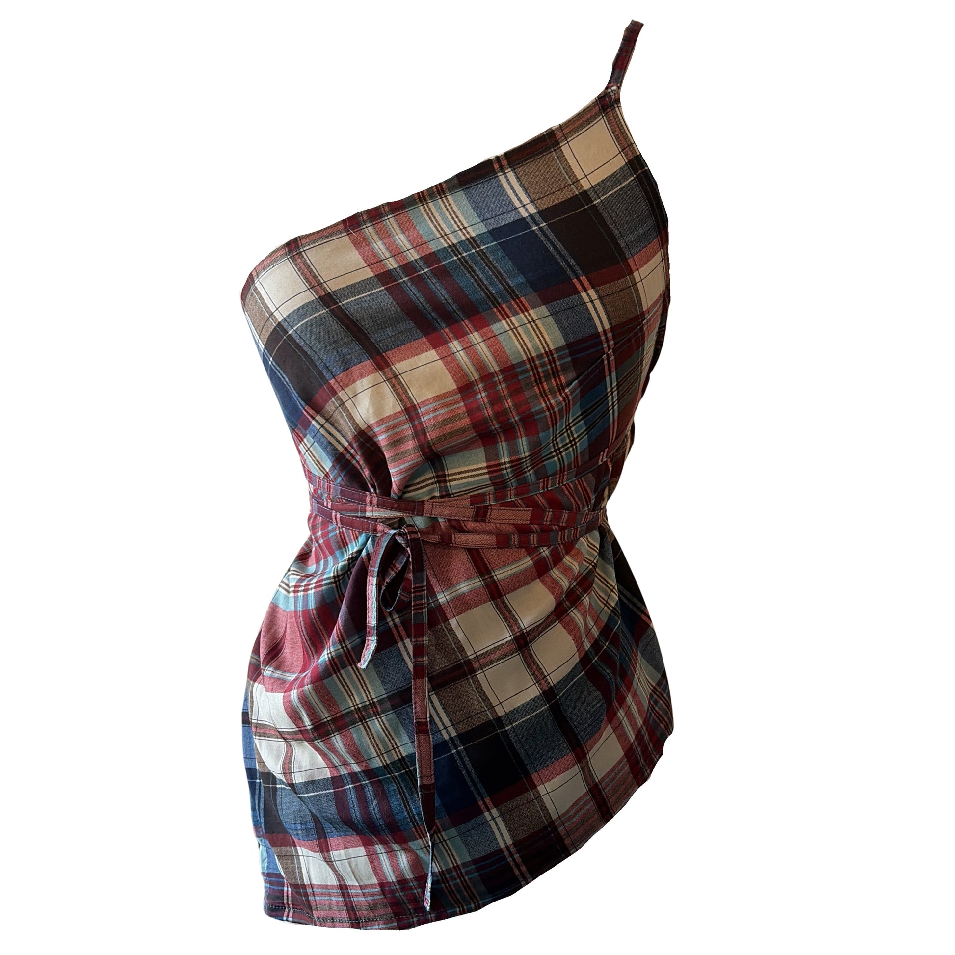 Diseño de un solo tirante con escote diagonal y construcción envolvente en el delantero.