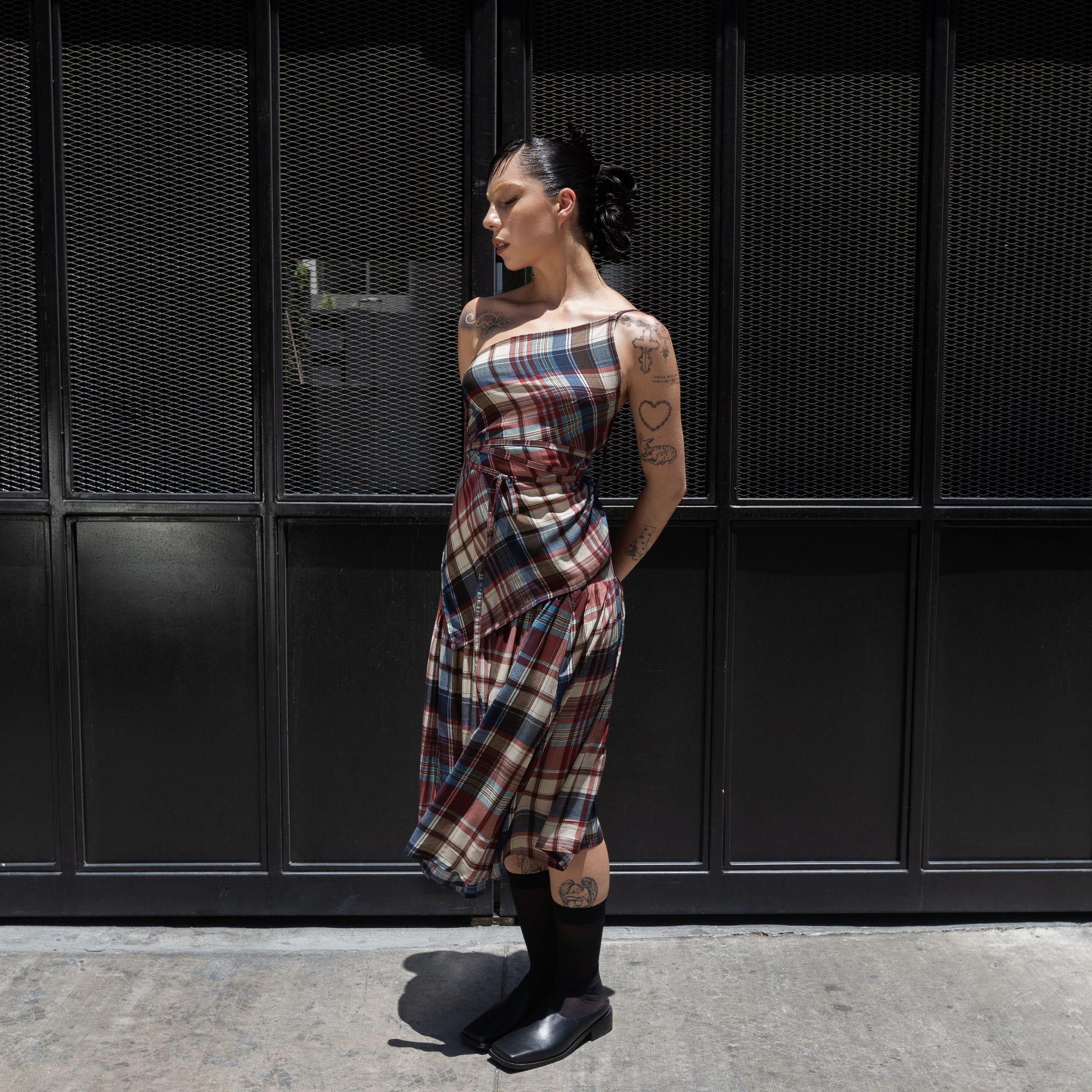 Confeccionado en tejido viscosa tartán, de peso liviano y buena flexibilidad.